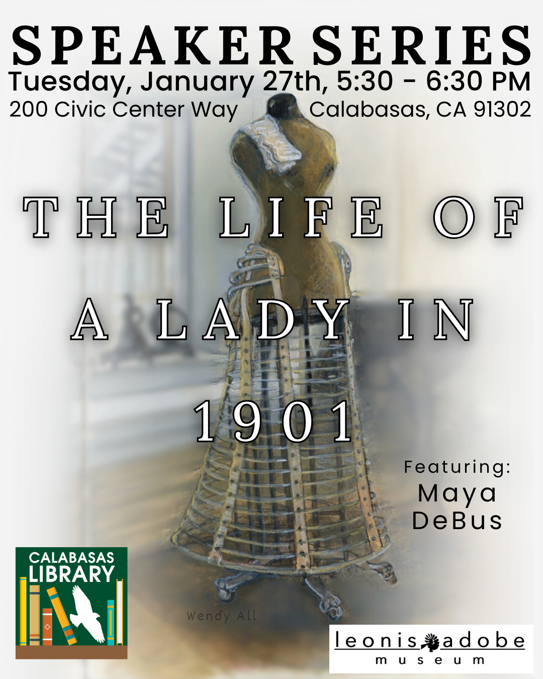 Join us for the Leonis Adobe Museum Speaker Series, a co-sponsored event with the Calabasas Library. Maya DeBus, a Leonis Adobe Museum Guide, and a lifelong history enthusiast will discuss the transformation of women at the start of the 20th century. At the end of the Victorian era, advances in industry and technology presented women with new confidence and opportunities.